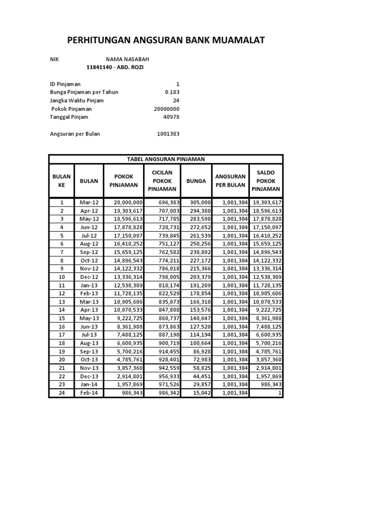 Nasabah dapat menjadikan aset barang bergerak maupun. 11 Cara Mendaftar Yang Mudah. Bank Muamalat dikenal dengan bank syariah pertama di Indonesia pada tahun 1992 yang tentunya juga melayani tabel angsuran KTA Muamalat.